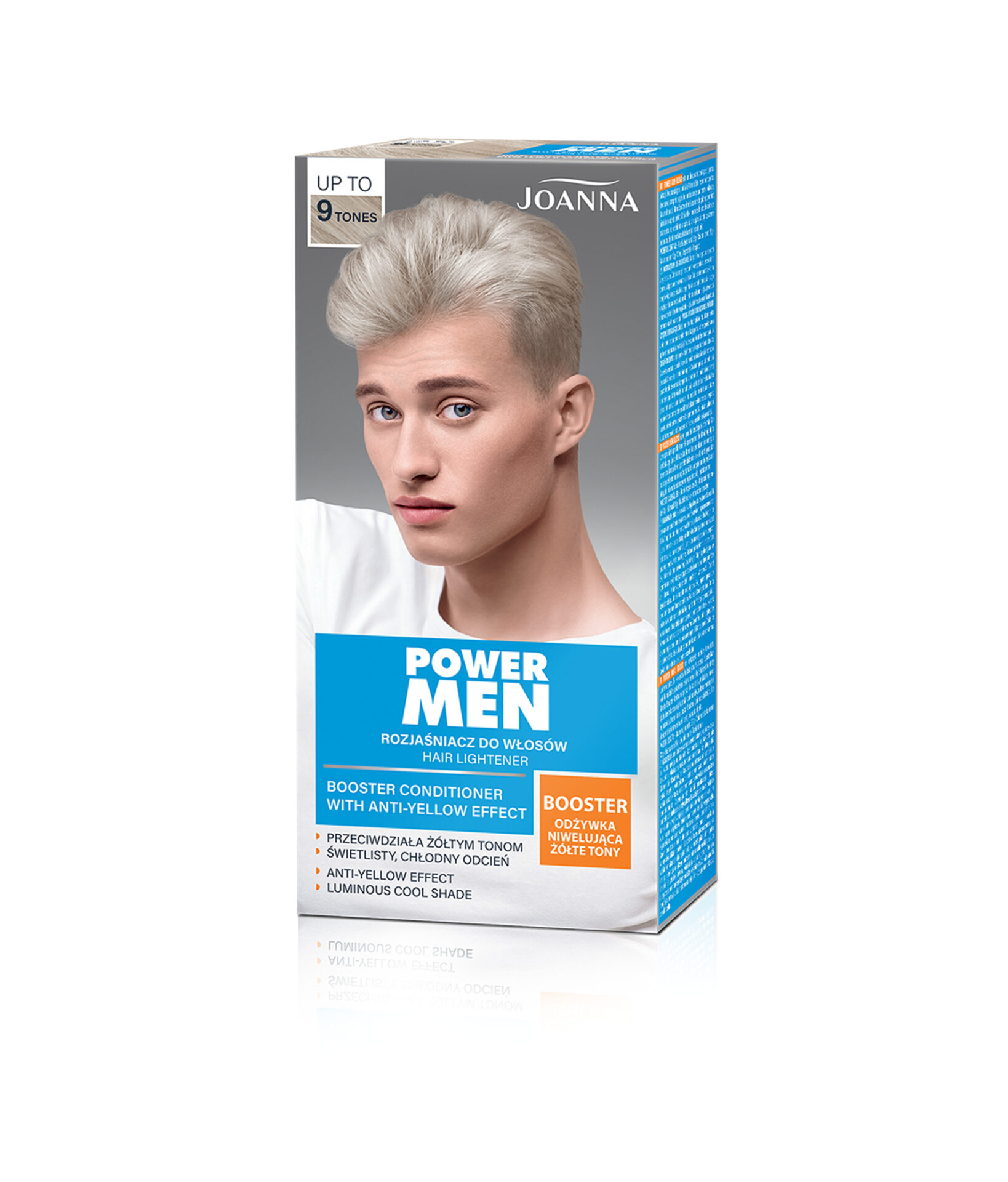 Opt for a luminous, cool shade of blonde with Joanna Power Men BLOND hair lightener. Not only will it lighten your hair by up to 9 tones, but thanks to the specially formulated Booster conditioner, it effectively neutralizes yellow tones as well. Use it for your entire hair or for highlights and balayage, and have fun with your look!