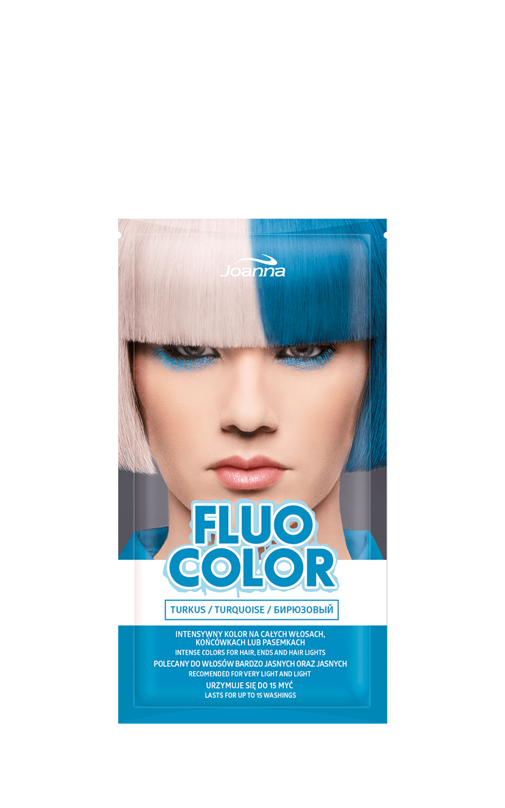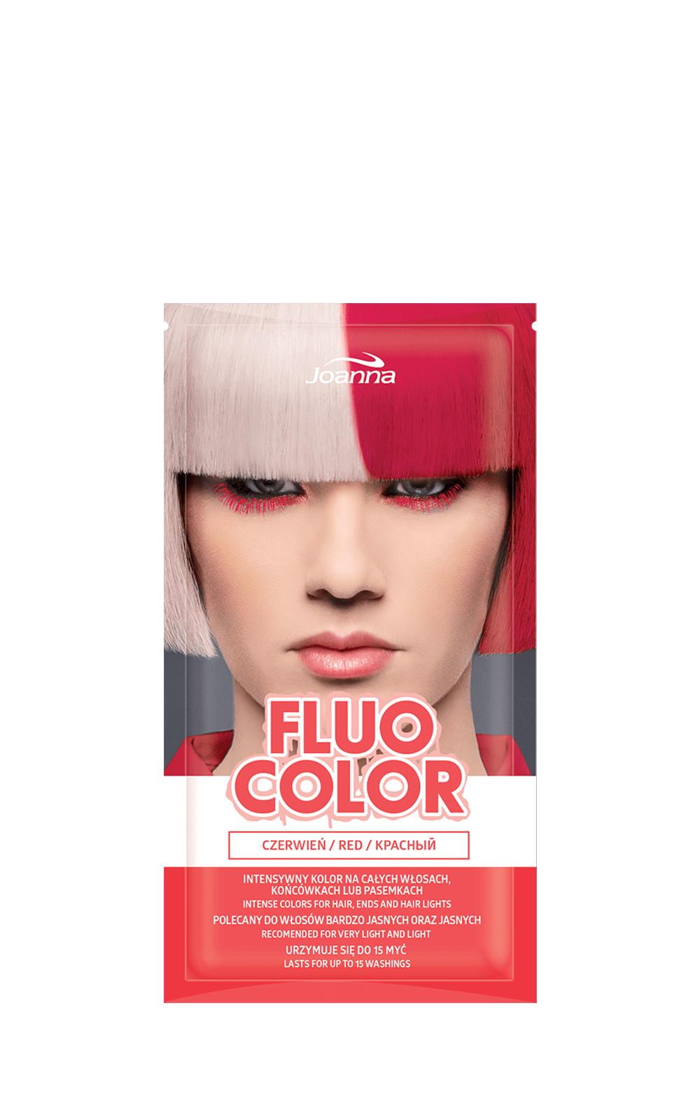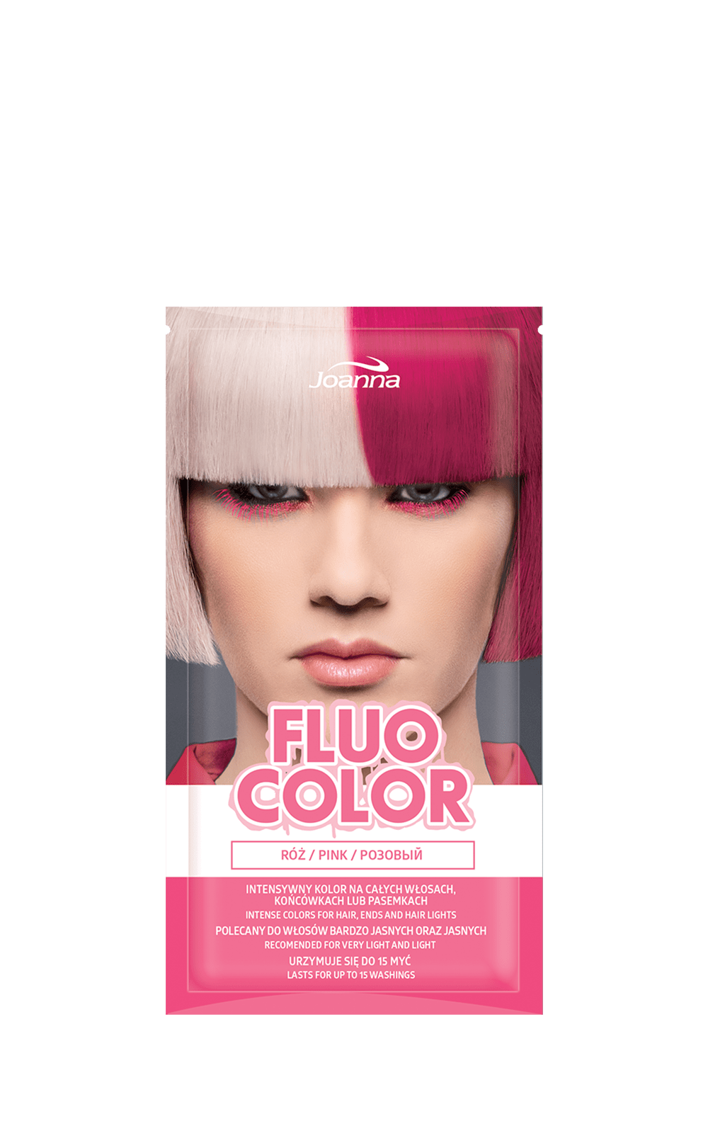Kreuj swój look! Intensywny kolor na całych włosach, końcówkach czy pasemkach? Ty decydujesz co wybierasz! Fluo color to linia półtrwale koloryzujących kosmetyków. Kolor utrzymuje się na włosach minimum 15 myć i jest widoczny od razu po aplikacji. Produkty nie zawierają utleniacza i amoniaku, przez co są bardzo łagodne dla struktury włosów. Najlepszy efekt można zaobserwować na bardzo jasnym blondzie, jasnym blondzie lub na włosach rozjaśnianych. Dzięki formie saszetki produkt jest bardzo wygodny i łatwy w użyciu.