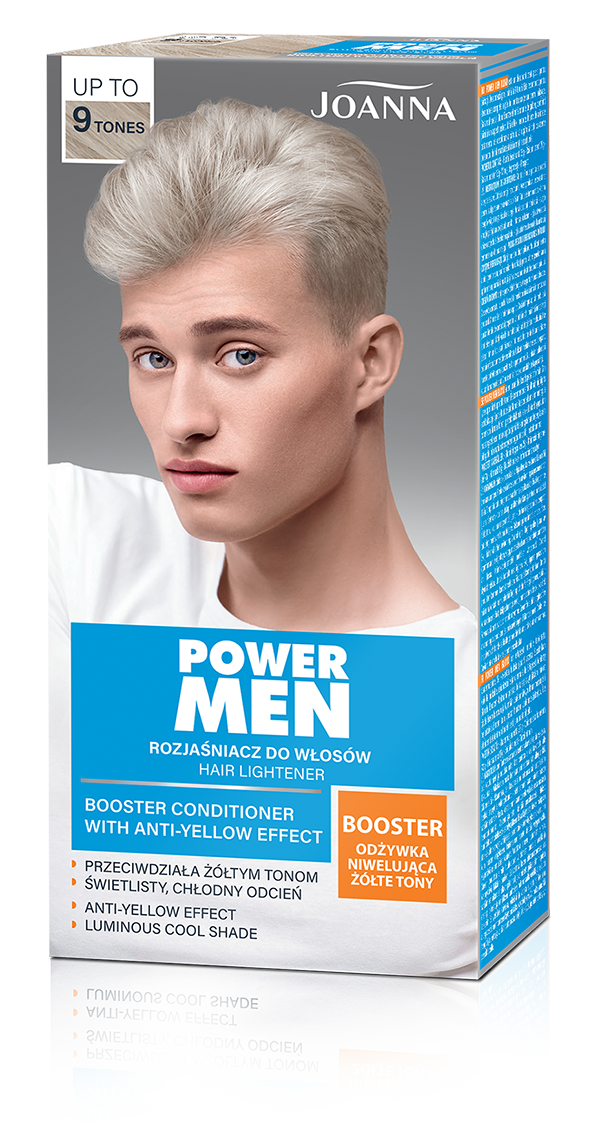Postaw na świetlisty, chłodny odcień blondu z rozjaśniaczem do włosów Joanna Power Men BLOND. Nie tylko rozjaśni włosy nawet do 9 tonów, ale też dzięki specjalnie opracowanej odżywce Booster skutecznie niweluje żółte tony. Użyj do całych włosów lub pasemek czy balejażu i baw się lookiem!
